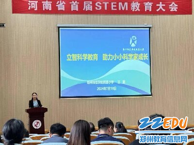 郑州师范学院附属小学党总支书记、校长王慧在河南省首届STEM教育大会上进行典型案例分享。