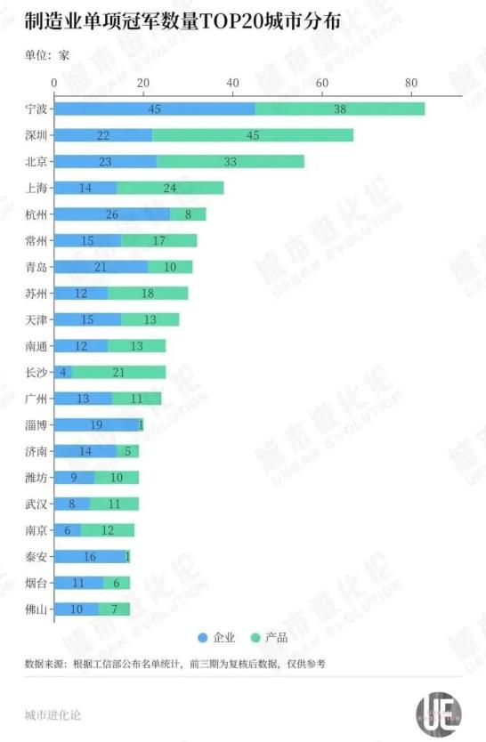 目前,我国已先后培育遴选了7批1186家制造业单项冠军企业,宁波、深圳、北京、上海、苏州、青岛、广州、长沙、天津等位居前列。