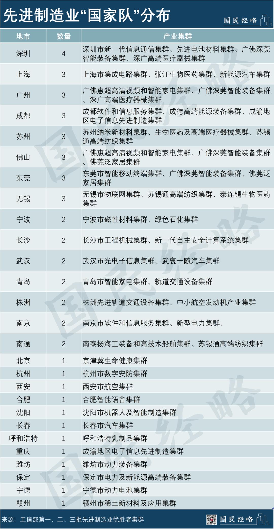 过去几年,工信部先后发布三批先进制造业集群优胜者名单,共有。