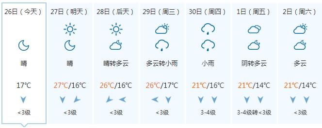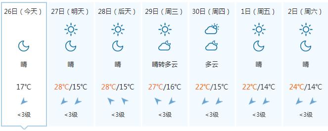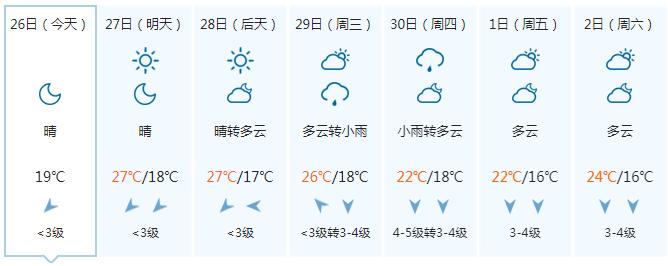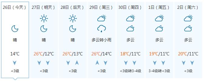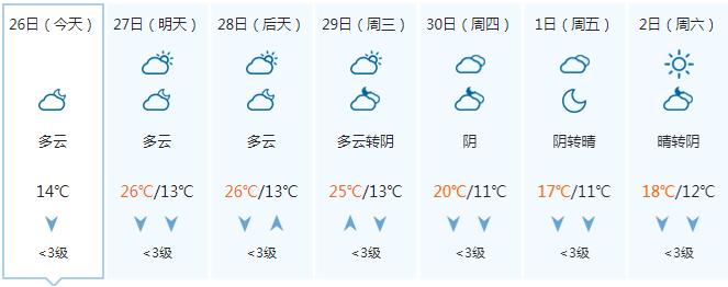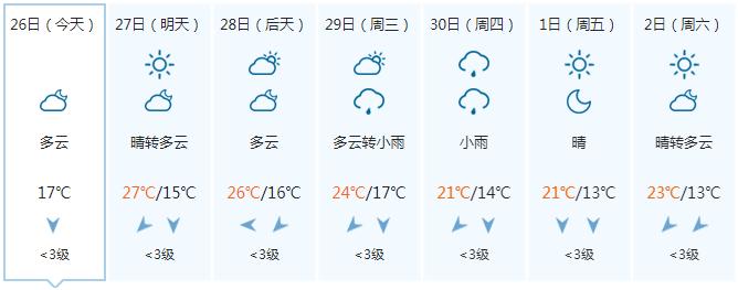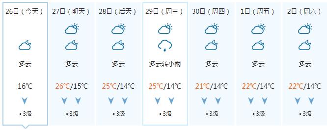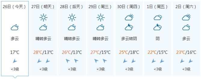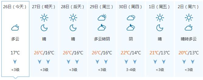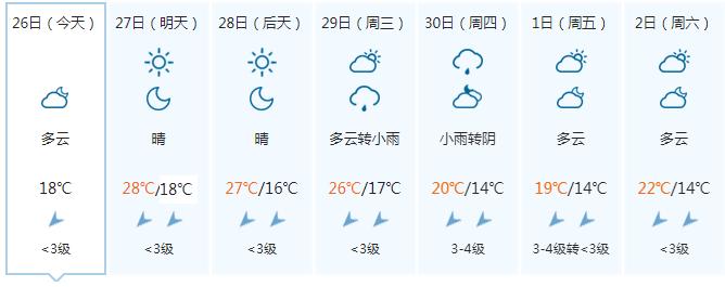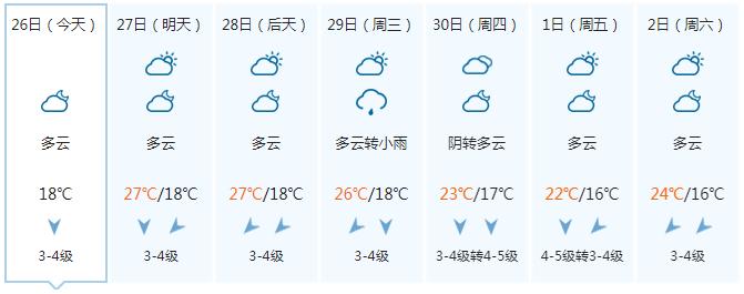 南宁市:今天晚上到明天白天,多云到晴,东北风1~2级,最低温度18℃,最高温度28℃。