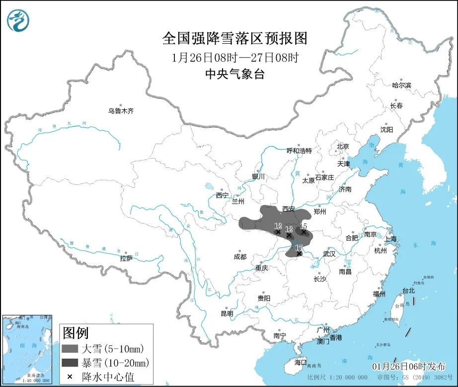 预计1月26日08时至27日08时,甘肃东南部、陕西中南部、河南西部、湖北西部等地部分地区有大雪,其中,陕西南部、湖北西部等地局地有暴雪(10~17毫米)。上述部分地区新增积雪深度3~6厘米,局地可达8厘米以上。