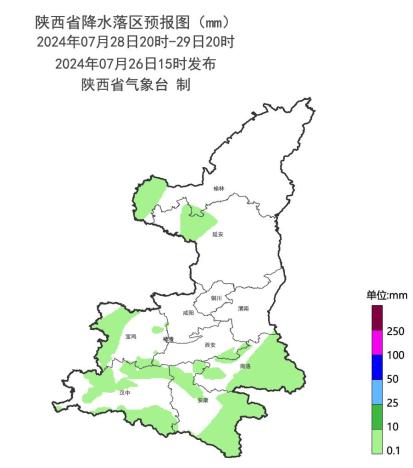 全省多云间阴天。关中大部、陕南大部有阵雨或雷阵雨(0.1-5mm),其中关中西部局地、陕南西部局地有中到大雨(5-40mm),降水期间局地伴有雷电、短时暴雨、雷暴大风等强对流天气。陕北东部、关中中东部部分、陕南部分地方有35℃以上的高温天气。