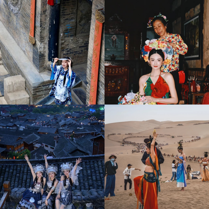 敦煌、延吉、西双版纳……为什么1.0时代的“民族风约拍”总是踩雷?1.0阶段往往以一个因地制宜的“民族风约拍”模型带火一个城市的爆红地标的形式出现,通常要具备“独特的少数民族服饰+适配度最高的景区”的用户认知,比如拍“飞天西域服”认准敦煌的鸣沙山,拍“苗疆女”认准贵州“千户苗寨”,拍“哈尼公主”则认准西双版纳的月光夜市。