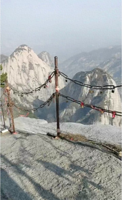 “监控视频有点模糊,大概在华山东峰的地方,看到一个人滑下去了。”王女士从监控视频中看到了疑似儿子的身影,在18日18时许发生坠崖事故。后来,王女士和家人前往坠崖点查看,发现那个位置设置有护栏,“护栏有高有低的”。