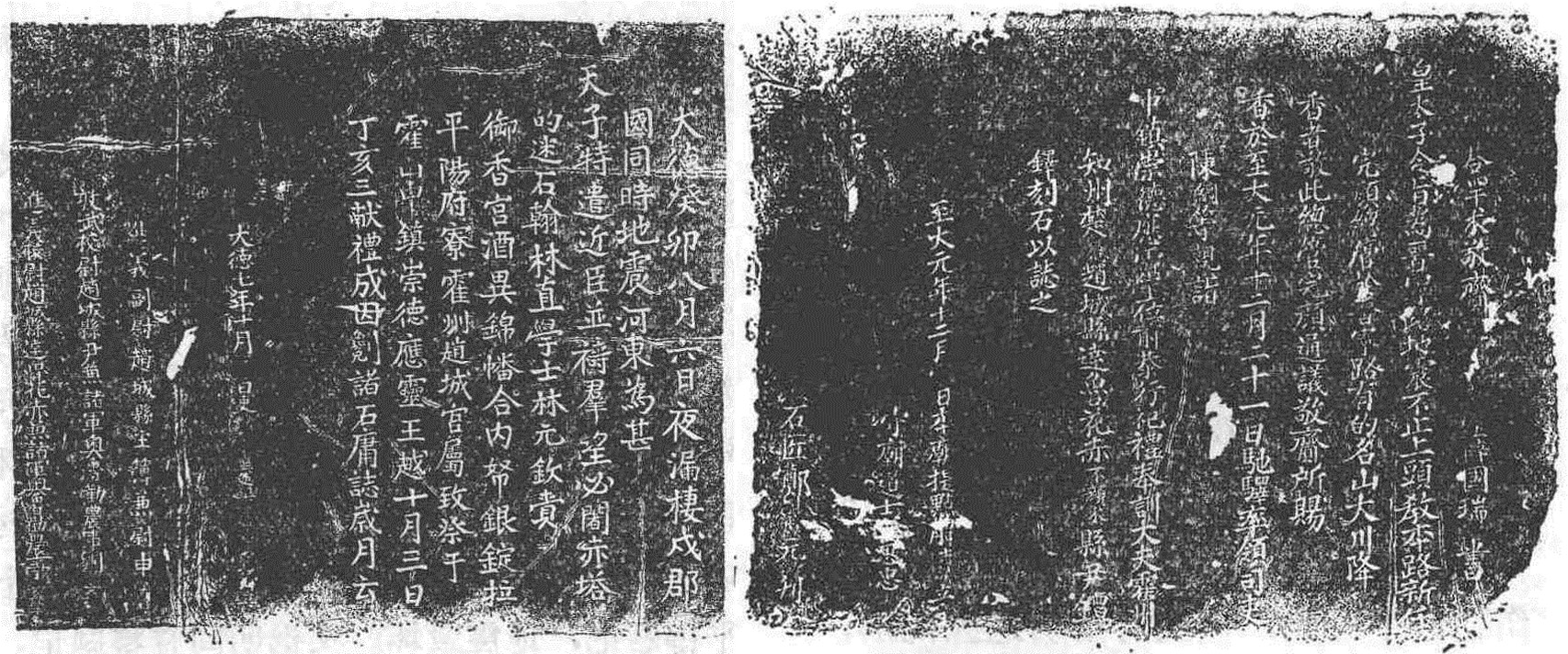 也有人选择了其他的记录方式。永和县阁底乡吾儿岭上保存有一处摩崖石刻,内容为:“戌时地震,平阳一路人口死伤一十七万六千三百六十五口,五万四千六百五十户。伤残人民五万四千余户。大德七年八月初六日戌时地动。”另一则题记与其相邻,内容是:“铁罗村李善,至元三十年八月一日,三十四定具钞买了卧鹿山,元贞三年闰四月十五日住坐。”从中可知,这位李善于1293年买下了卧鹿山,1297年搬到山中居住,六年后在此经历了洪洞地震。李善的家乡铁罗村可能就是卧鹿山西南约二十公里、位于黄河岸边的铁罗关村。是何原因让李善从本村迁出,到卧鹿山买山居住?地震中他有何具体经历,又是如何得出如此详尽的伤亡数字?我们已不得而知。只有勒于山石之上的几行文字,留下了地震来过、李善曾经历过的证据。