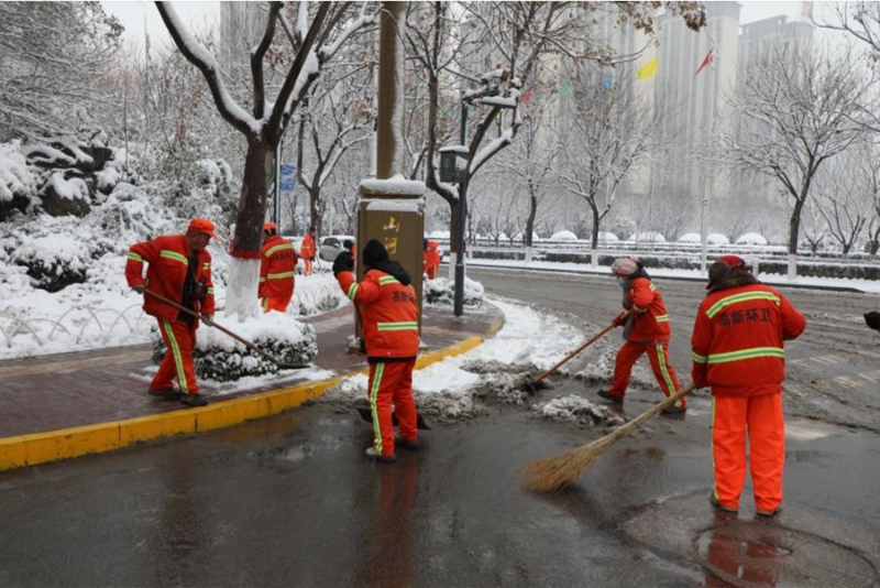降雪后,渭南高新区城市管理处采取机械和人工相结合方式开展除雪去冰行动。