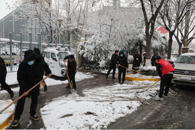 渭南高新区领导干部带头第一时间走上包联路段铲雪除冰。