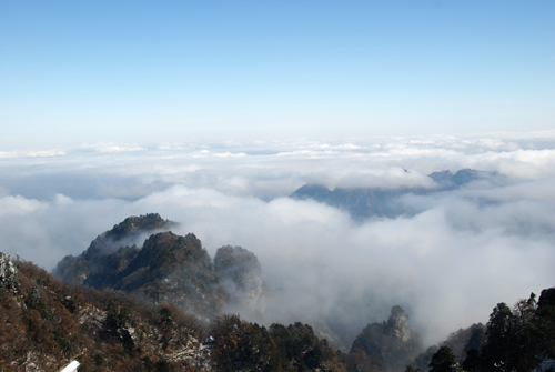 武当山位于湖北省十堰市丹江口市境内,东接历史名城湖北省襄阳市,西靠车城十堰市城区,南依原始森林神农架林区,北临南水北调中线源头——丹江口水库。“踏入武当景远幽,六月炎夏变成秋”,武当山属亚热带季风气候,垂直气候明显,气温随海拔高度递减,年平均气温在16摄氏度左右,也是全国十大避暑胜地之一。