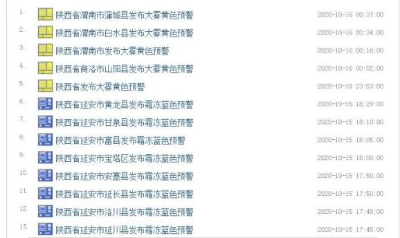 西安市临潼区、蓝田县、周至县,铜川市王益区、印台区、耀州区,咸阳市三原县、乾县、礼泉县、永寿县,渭南市临渭区、合阳县、澄城县、蒲城县、白水县、富平县、韩城市,汉中市汉台区、南郑区、留坝县,安康市平利县,商洛市山阳县,请注意防范。