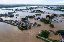 题:“加快转移,不漏一人”——湖南湘潭涓水第三处决口现场直击 这是7月29日拍摄的涓水湘潭县河口镇华中村堤段决口险情现场(无人机照片)。” 7月29日,在涓水湘潭县河口镇华中村堤段附近,抢险人员搜寻被困群众(无人机照片)。