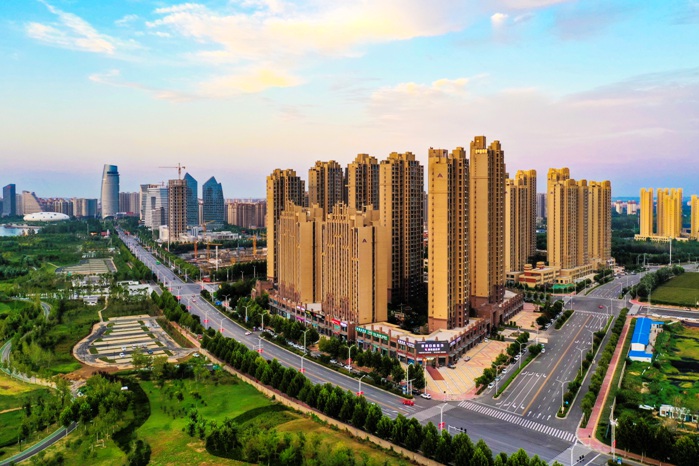 目前,示范区建成区绿地面积405万平方米,绿地率42.19%。不仅生态环境美,不断提升优化的营商环境也为示范区高质量发展带来了强劲动力。图为示范区街景俯瞰图。