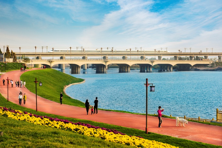 今年年初以来,鹤壁示范区坚持“水绿一体”,完善“一河六园一岛”生态绿廊。沿淇河建设了淇水关植物园、淇水樱华园、淇澳翠境园、朝歌文化园、银沙滩公园、淇河南岸森林公园、生态岛。坚持“路绿一体”,建设高质量“一路一景”生态绿带。初步完成淇河南岸道路绿化提升工程,正在加快推进道路街角提升工程和淇水湾片区8条道路绿化工程,在“一路一景”的基础上进一步打造“一街一角”,同时融入“满城樱花”的理念,对淇水湾片区南海路、淇水关路、鹤淇大道、泰山路等道路交叉口20余个街角进行绿化提升,打造精品城市园林景观。