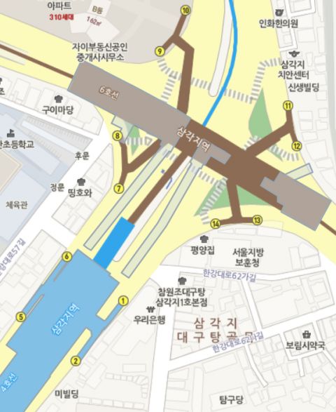 位置:首尔市龙山区汉江大路62街3,靠近地铁三角地站1号、14号出口