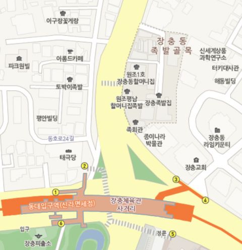 位置:首尔市中区奖忠坛路174一带,靠近东大入口站3号出口