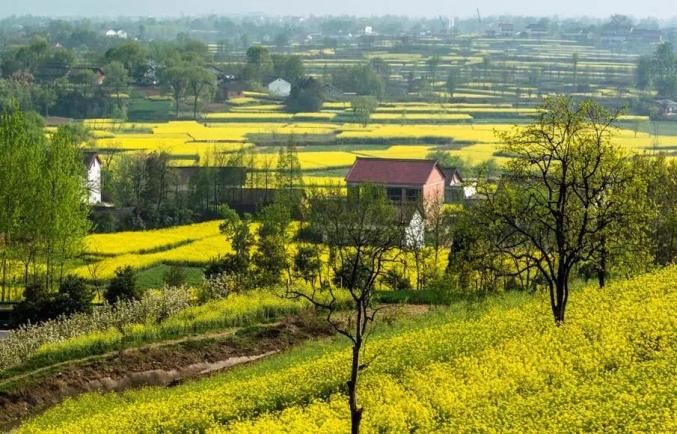 每到三月底,杨庄的沟沟坎坎中,金黄色的油菜花盛开,点缀着远山上树木的嫩绿,一眼望去,金灿灿的一片,像一幅油画,风景美不可言。