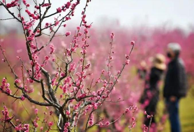唐村梅园以终南山、南五台为远景,每逢花开时南山映染,3000株梅花灿若云霞。漫步其中,再配上初春的暖阳,别有一番曲径寻香的诗意体验。