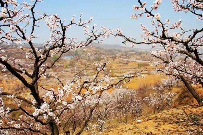 一千多亩的沟壑之中都种植着杏树。远远望去,一树一树的花开,渲染着这个春天动人的活力。
