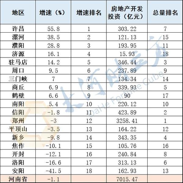 许昌市房地产开发投资303.22亿元,增速达55.8%,居河南省第一。漯河市和濮阳市房地产开发投资增速分别以38.5%和28.8%居河南省二、三名。