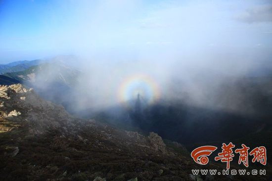 当天下午4时许,在海拔3510多米高的太白山大文公庙至大爷海之间,雾气腾腾,行至此处的游人犹如在仙界中行走。到了下午5时30分摆布,雾气逐步散去,天空也随之放晴,天越来越蓝,犹如刚被洗过通常,朵朵白云也陆续“上台”,配合着蓝天、青山,让山中的风光美到了极致。就在这时,山沟间一股雾气逐步上升,之后便呈现了一团七彩光环。游客陈宏伟刚好通过此处,看见了“佛光”呈现的全过程,并用相机拍照了下来。他通知记者,“佛 光”外层是七彩色彩,内层则是一个亮点,从他站的位置看去,目测光环的直径约10米,大约继续了10分钟摆布。隔了五分钟摆布,“佛光”再次呈现。