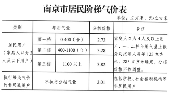 根据南京市发改委《市发改委关于优化调整居民阶梯气价政策有关事项的通知》[2021]723号,南京港华燃气阶梯收费标准如下表: