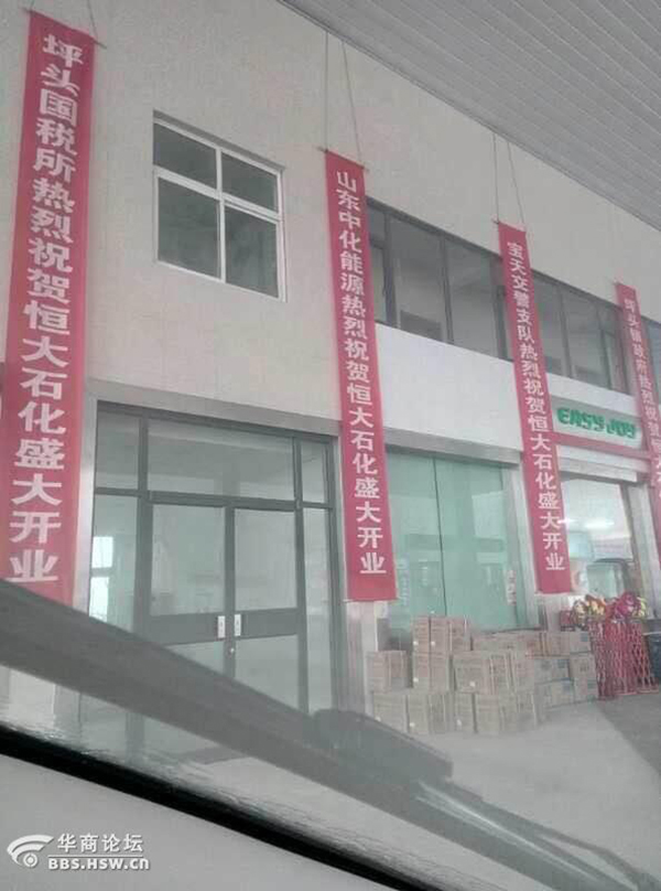 该值班民警还表示,2月7日上午已对“恒大石化”加油站的负责人进行了口头警告,在接受民警教育之后,该名负责人也意识到自己的错误,把所有条幅都撤了下来,“从挂上条幅到撤下,不到两天时间。”