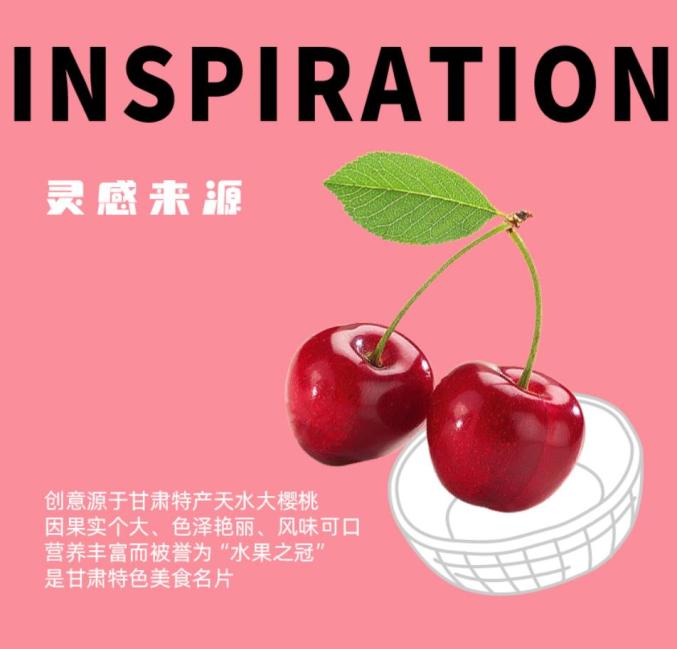 快抱走这个50J的大樱桃吧!设计创意源于甘肃特产天水大樱桃,因果实个大、色泽艳丽、风味可口、营养丰富而被誉为“水果之冠”,是甘肃特色美食名片。