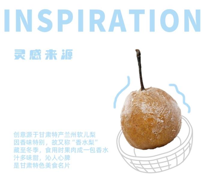 我想要住进梨心里!设计创意源于甘肃特产兰州软儿梨,因香味特别,故又称“香水梨”,藏至冬季,食用时果肉成一包香水,汁多味甜,沁人心脾,是甘肃特色美食名片。