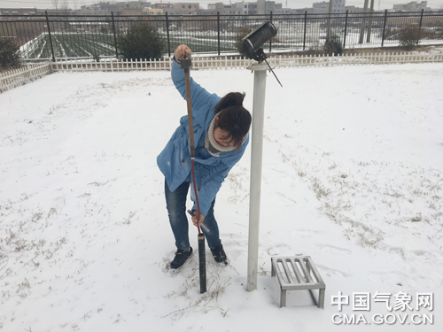 中国气象报通讯员霍苗报道 2月21日,山西省侯马市下了立春后的第一场雪。侯马市气象局工作人员加密值守,开展气象服务。