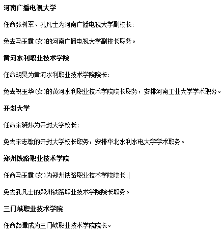 据河南发布,河南省政府发布一批人事任免通知,涉及5所高校。