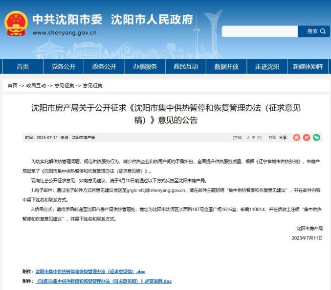 为切实化解供热管理问题,规范供热服务行为,减少供热企业和热用户间的矛盾纠纷,全面提升供热服务质量,根据《辽宁省城市供热条例》,市房产局起草了《沈阳市集中供热暂停和恢复管理办法(征求意见稿)》。