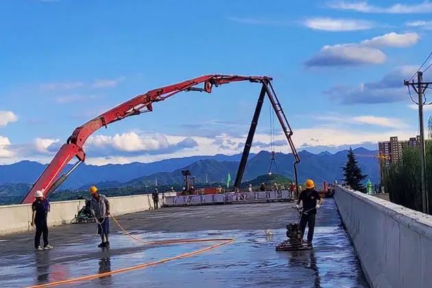 【宝鸡虢磻渭河大桥桥面铺装首件工程成功浇筑】日前,中建路桥集团承建的宝鸡虢磻渭河大桥项目第五联桥面铺装首件工程顺利浇筑完成,标志着大桥桥面铺装施工正式拉开序幕。据悉,虢磻渭河大桥是宝鸡市重大城市基础设施建设工程,对促进当地经济发展、方便群众生活、提升城市形象具有重要作用。该项目建成后将极大缓解当地早晚高峰的交通拥堵状况,为当地居民提供更加便捷的交通出行条件。