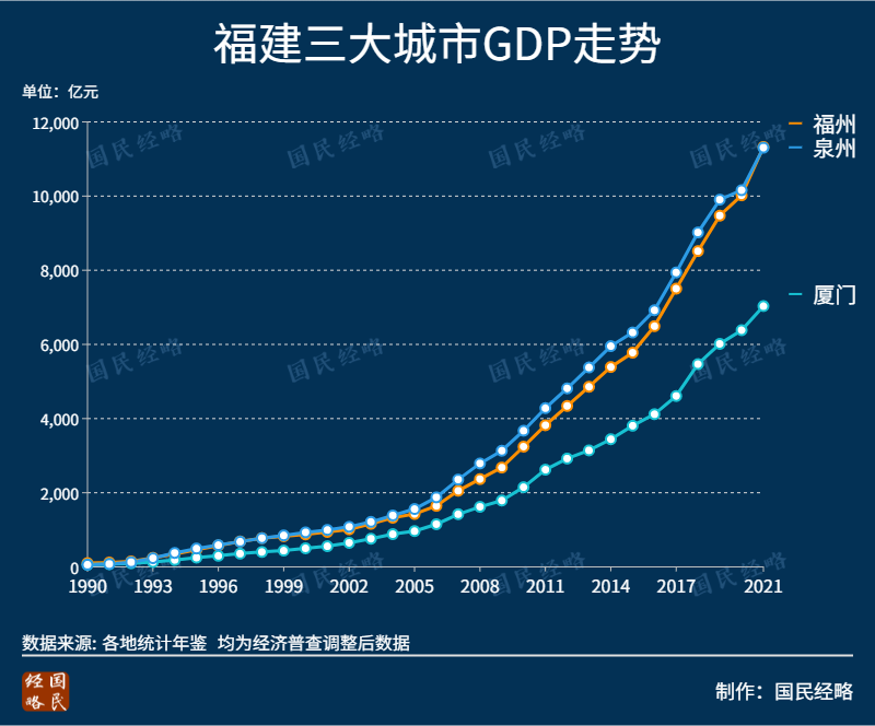 虽说在刚刚过去的2021年,作为福建省会的福州,以微弱优势超过泉州,重返福建第一大市之位,但泉州多项指标仍位居省内首位。(参阅《2021年,全国TOP50城市GDP排行榜》)