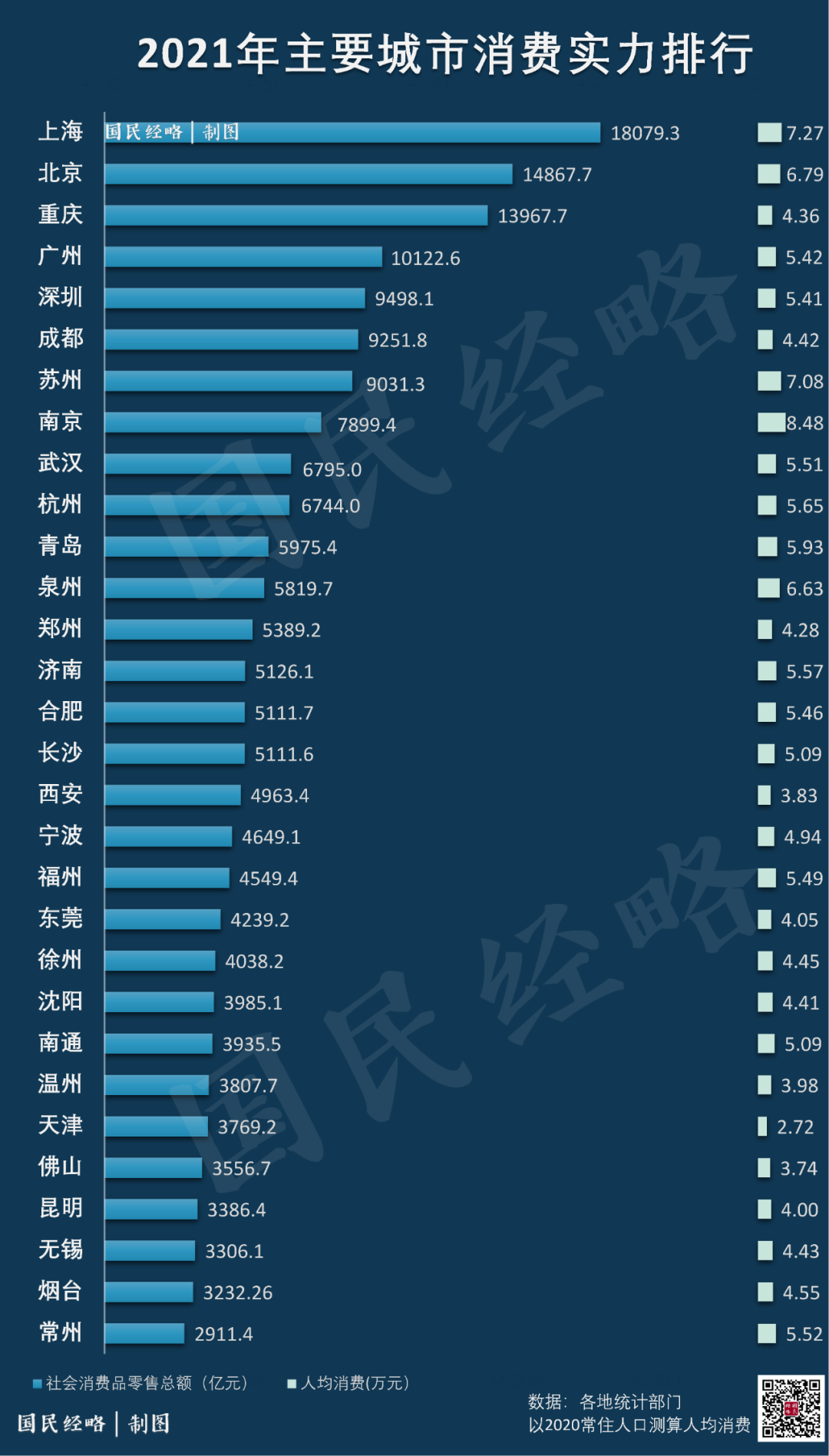 原标题:《2021年,全国十大消费城市排行》