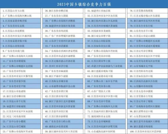2023中国百强镇、2023中国中部百强镇、