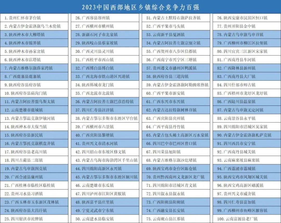 2023中国西部百强镇