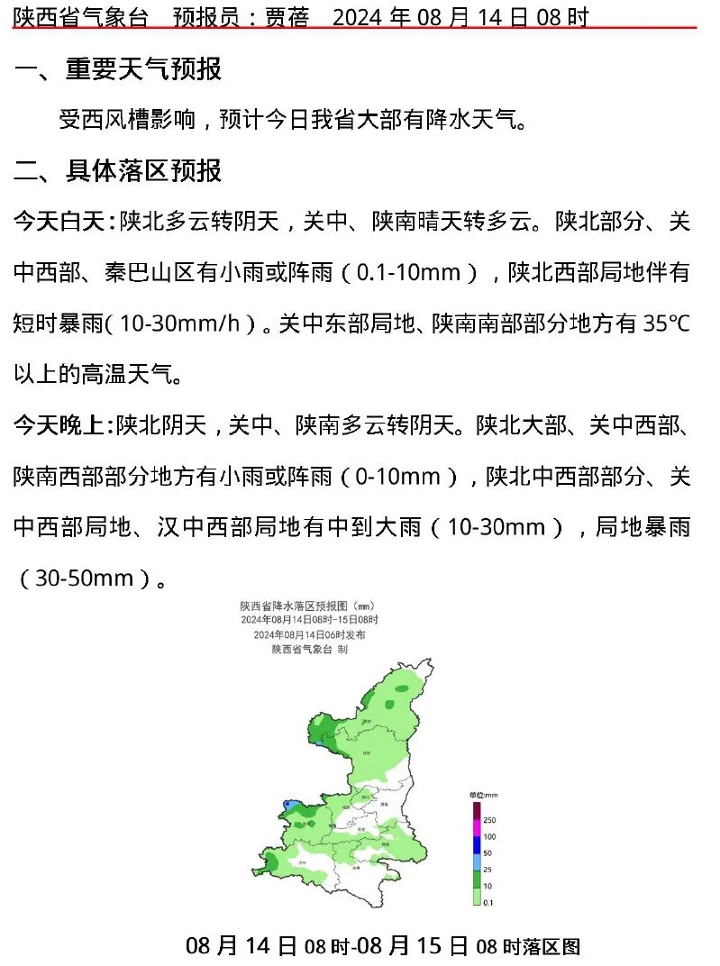 明天:阴天转小到中雨,偏西地区局地大雨。