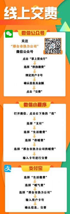 2、网上缴费时间:自10月3日上午10点起,可通过微信公众号“华能邯郸供热”手机缴费