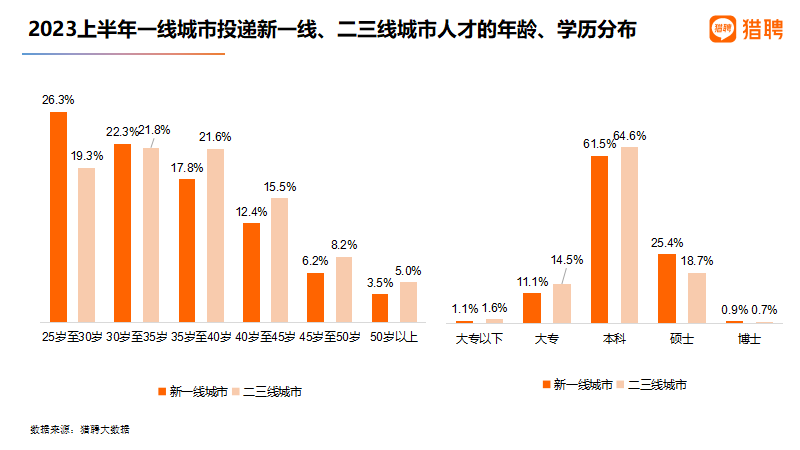 一线城市投递新一线城市人才以年轻人为主,投递二三线以中年人为主
