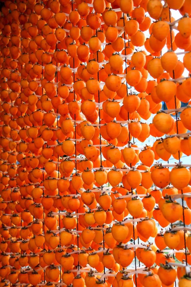 “吊”好的柿子,像是一枚煎得恰到好处的溏心蛋,内里璀璨金黄、浓郁饱满,外表如霜如雪、甜美动人。一口,就能让整个大西北“沦陷”为温柔乡。