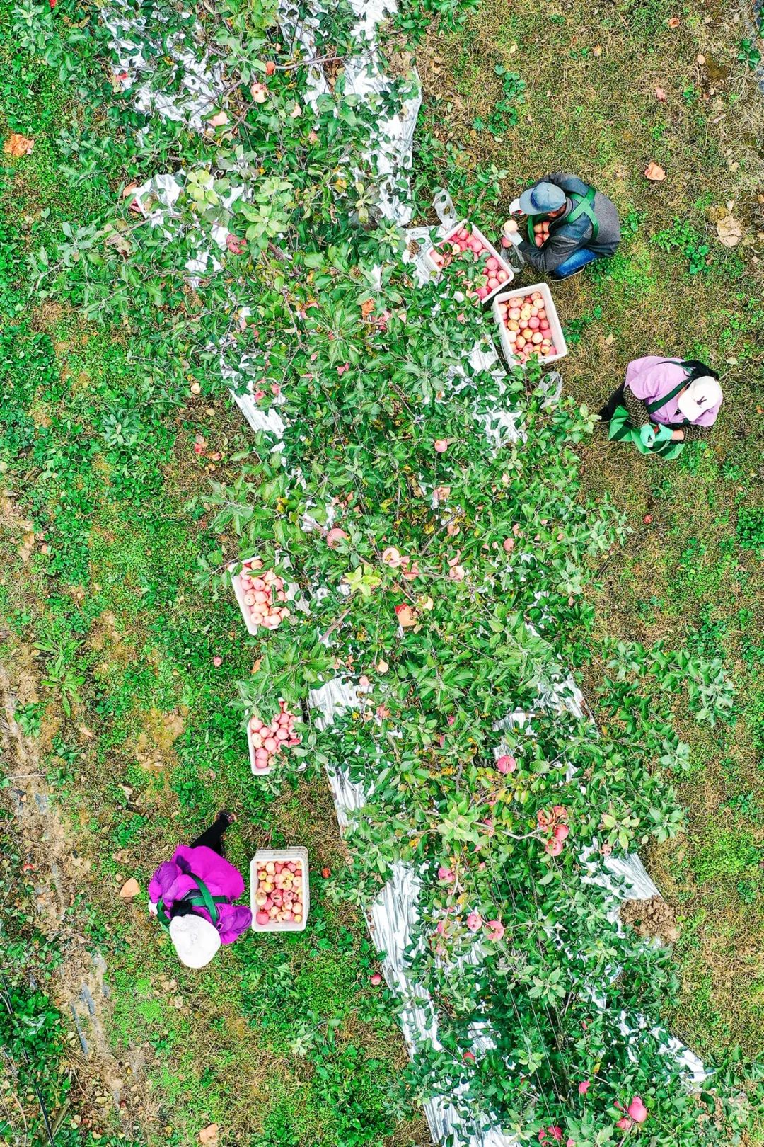 洛川又到丰收时节,果农正忙着采摘苹果分拣装箱。