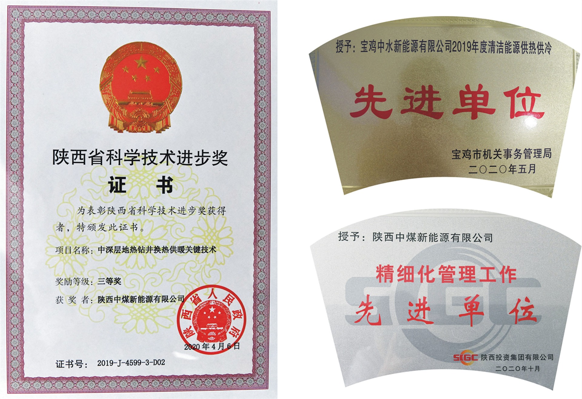 2016年11月,中煤新能源公司依托集团草滩生活基地建设,大胆创新,开展了《中深层地热钻井供暖关键技术》研究,成功实施了中深层半固结热储层U型对接井换热供暖项目,经院士专家评审,该研究成果总体达到国际先进水平,在U型对接井地热采集方面达到国际领先水平,成为全国各地学习交流的示范项目,引领地热能钻井开发技术创新发展;