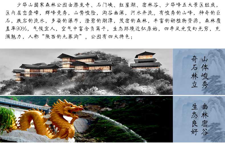 ★自然风光绮丽,文化底蕴深厚,是陕西东部黄金旅游线上以生态旅游、休闲度假、登山健身为主题的旅游风景区;
