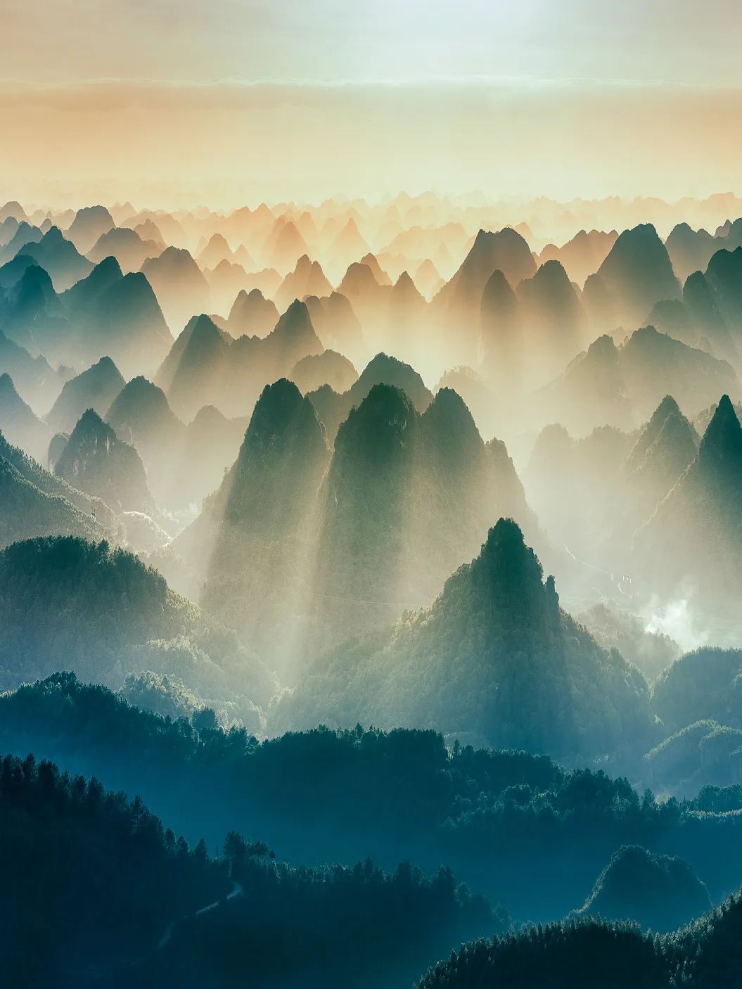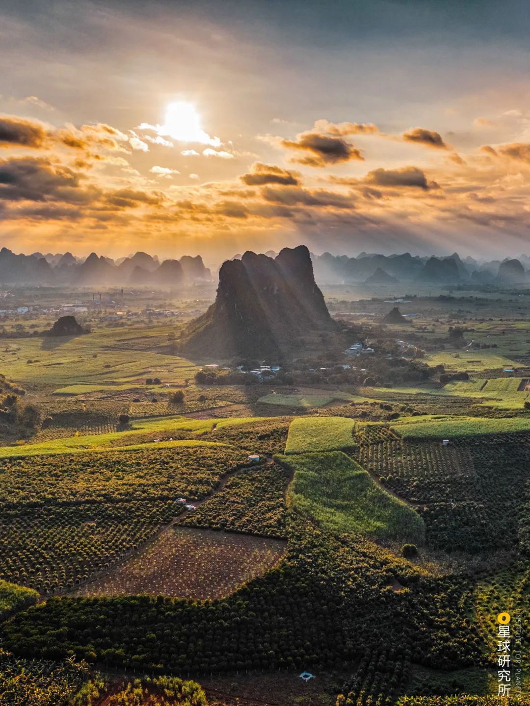(光影下的广西喀斯特地貌,图片来源@视觉中国)