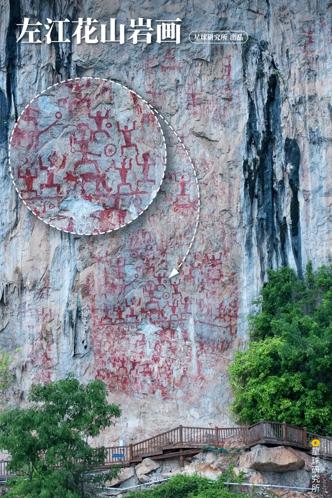 (崇左左江花山岩画,图片来源@视觉中国,制图@张琪/星球研究所)