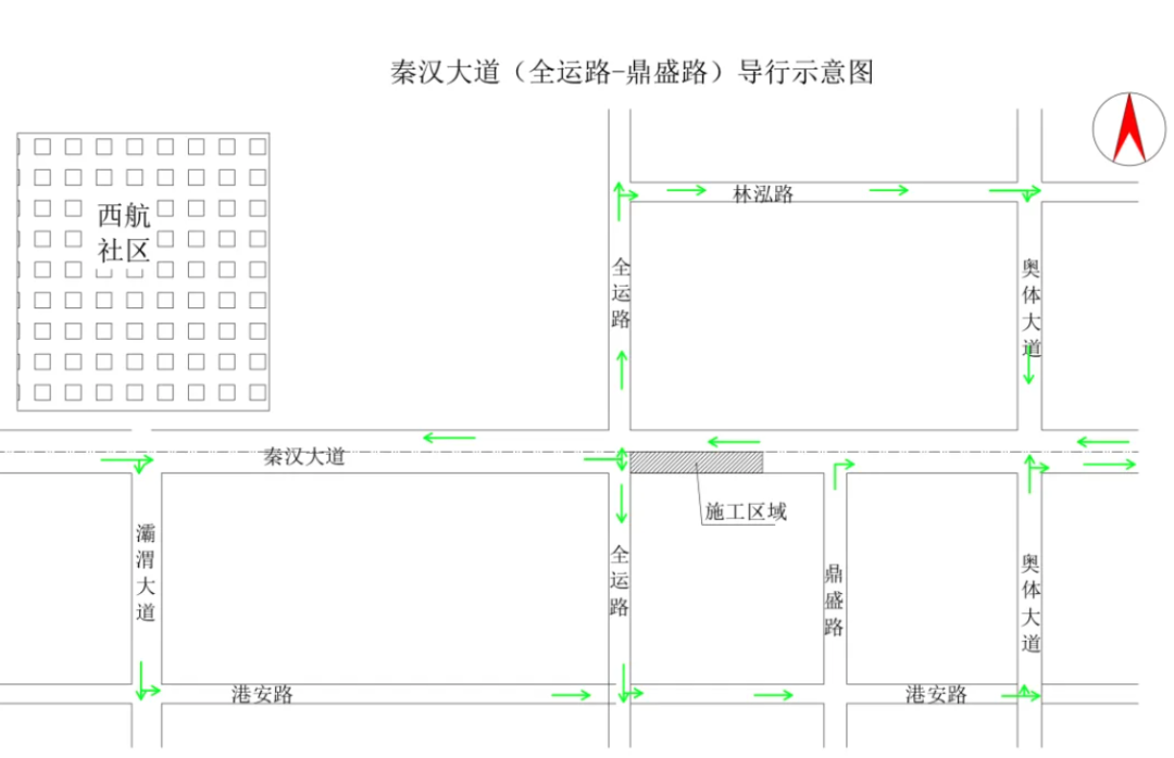 绕行方式一:灞渭大道(全运路)、港安路、鼎盛路(奥体大道)、秦汉大道。