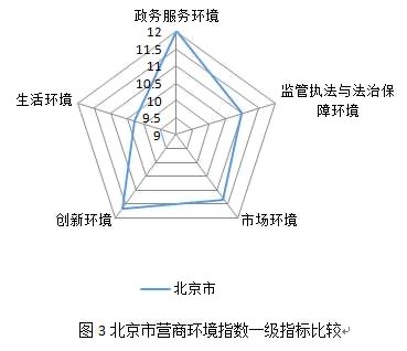 北京创新环境居首,营商环境暂居第二。北京营商环境指数总分为94.68分,创新环境优势明显,位列第一。其中,基础研究、企业创新、技术成果和信息赋能度等创新环境的细分指标均位居首位。