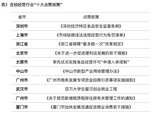 课题组以连锁经营企业为对象,重点收集了企业所在城市政府部门先行先试的创新政策,分别涉及北京、上海、深圳、中山等20多个城市、近50项政策,最终梳理出对其行业影响相对直接、支持力度较大、出台时间相对较早的“十大点赞政策”,如果这些政策能够得到推广和普及,将有助于经济活力的恢复。