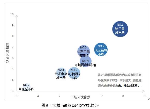 市场环境排名前十的城市与营商环境排名前十的城市高度一致,创新环境排名前十的城市与营商环境排名前十的城市重叠比重也高达80%,由此可见,市场环境和创新环境已成为决定城市营商环境竞争力的关键因素。
