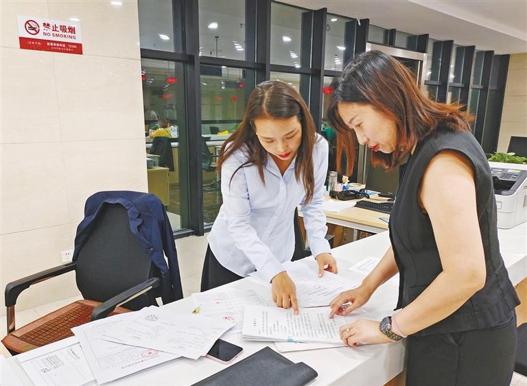 八月八日,宝鸡市陈仓区政务服务大厅里,工作人员指导企业负责人完善相关材料。受访单位供图