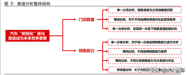 针对本文所使用的数据来源、样本误差项、指标定义、分析方法等进行详细介绍。 数据来源:(1)销量数据。本文销量数据来源是交强险数据,交强险数据可以更好的从 消费者上牌的角度观测各个品牌产品最终流向。(2)品牌选择。本文共选择 22 个品牌, 形成 4 个分类,包括豪华品牌、合资品牌、自主品牌、造车新势力。(3)门店数据。本 文销售门店数据来自于各公司官网的门店信息披露以及太平洋汽车网经销商数据1,通 过人工收集整理,收集时间均为 2022 年 3 月。